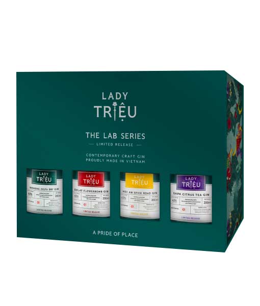 Rượu Lady Triệu The Lab Series Gift Set Tết 2024 là bộ sản phẩm phẩm tết và các dịp lễ trong năm dành cho mục tiêu trao tặng và dành cho những tín đồ về rượu Gin muốn khám phá hương vị đặc biệt của Rượu Lady Triệu Việt Nam Gin. Bộ sản phẩm The Lab Series Gift Set Tết 2024 này bao gồm 4 chai rượu Lady Triệu 200 ml bao gồm các chai sau: Rượu Lady Triệu Sapa Citrus Tea Gin 200 ml, Rượu Lady Triệu Hoi An Spice Road Gin 200 ml, Rượu Lady Triệu Mekong Delta Dry Gin 200 ml , Rượu Lady Triệu Dalat FlowerBomb 200 ml